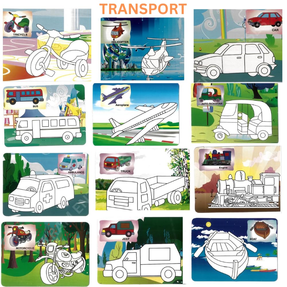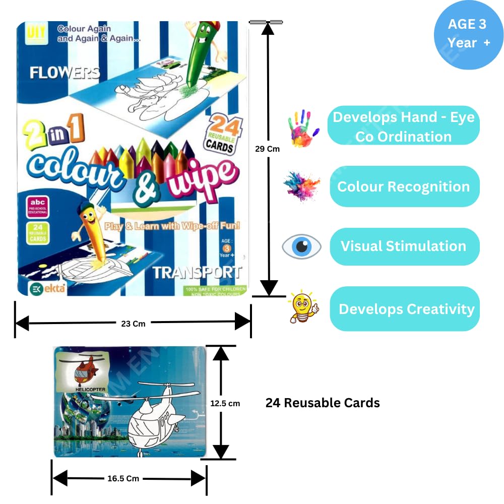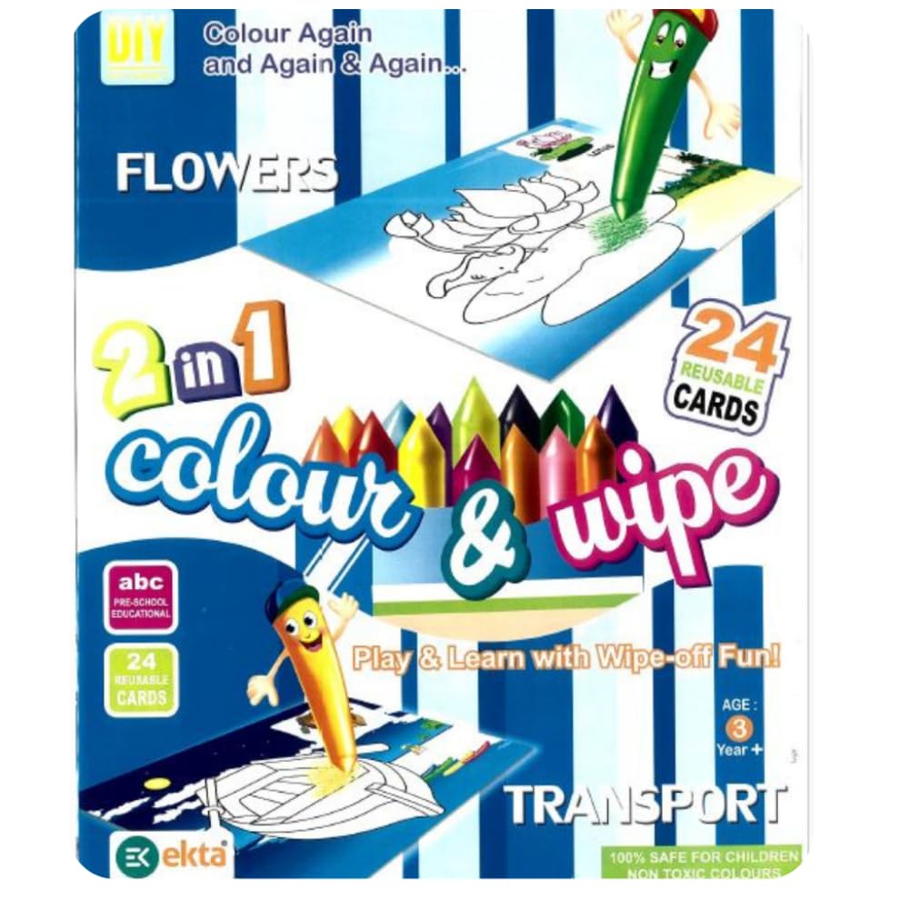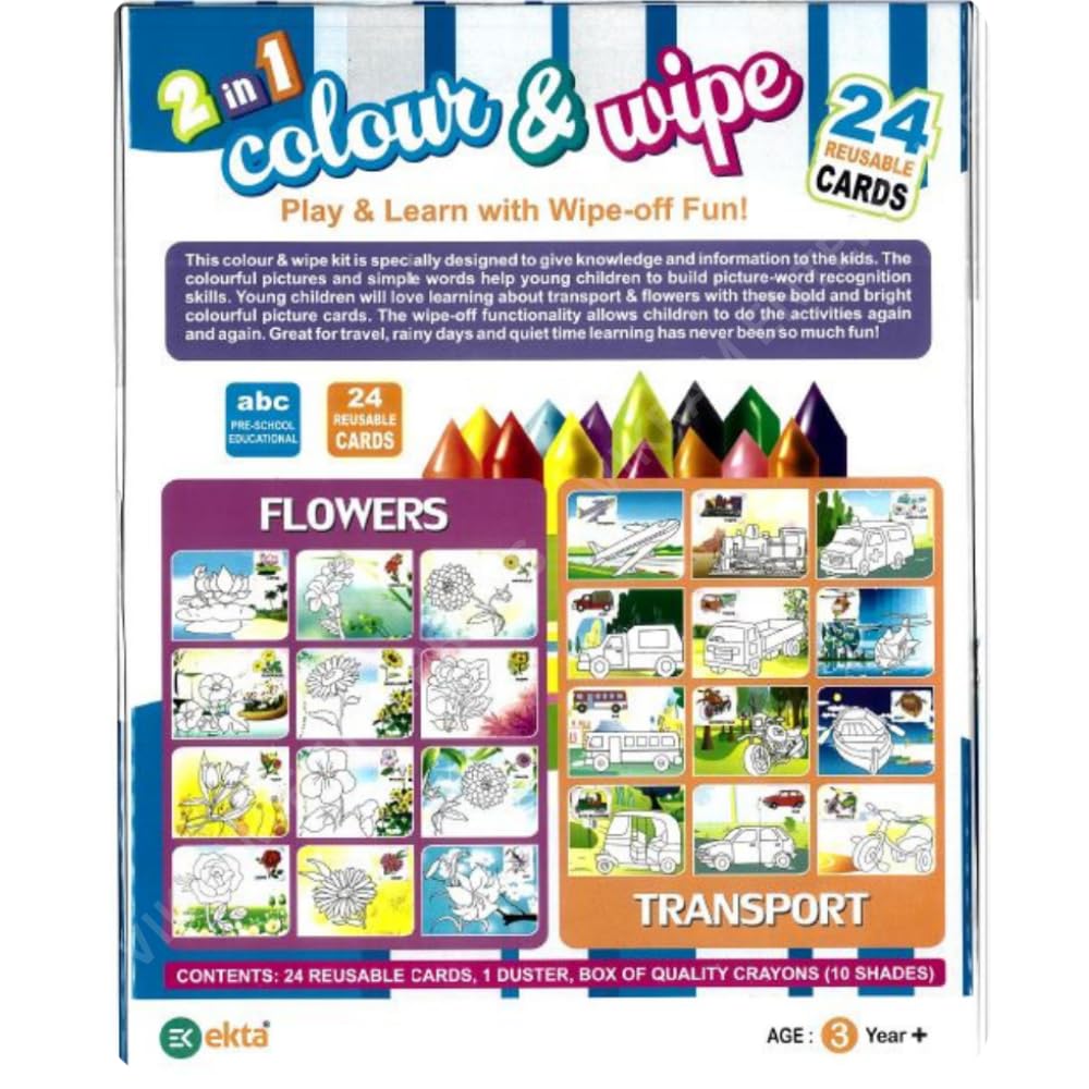 2 in 1 Colour & Wipe (Play & Learn with Wipe – Off Fun) Flowers & Transport Age 3+