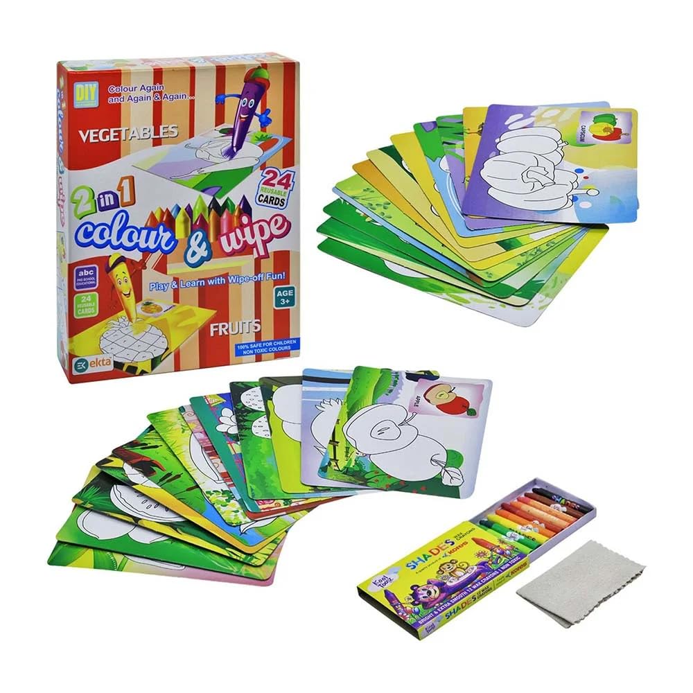 Art Bundle 2 in 1 Large Color & Wipe Flower Kit | Preschool Learning Painting Kit for Kids 3+ (24 Reusable Cards, 1 Duster and 12 Shades Crayons) (Animal)