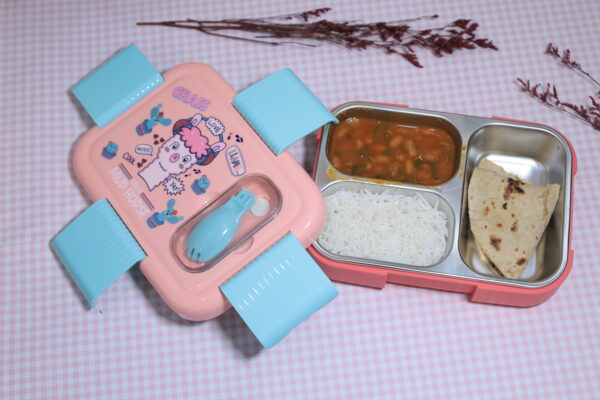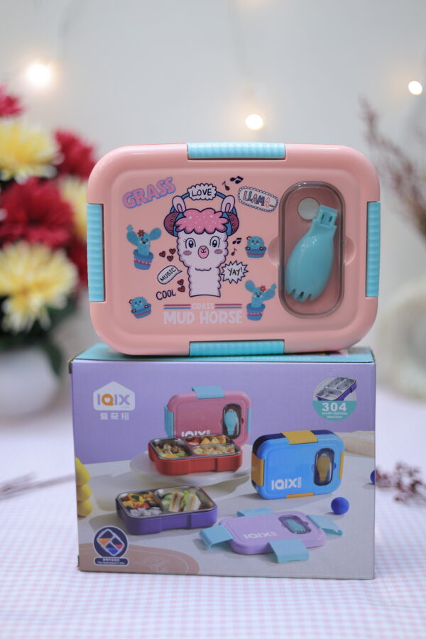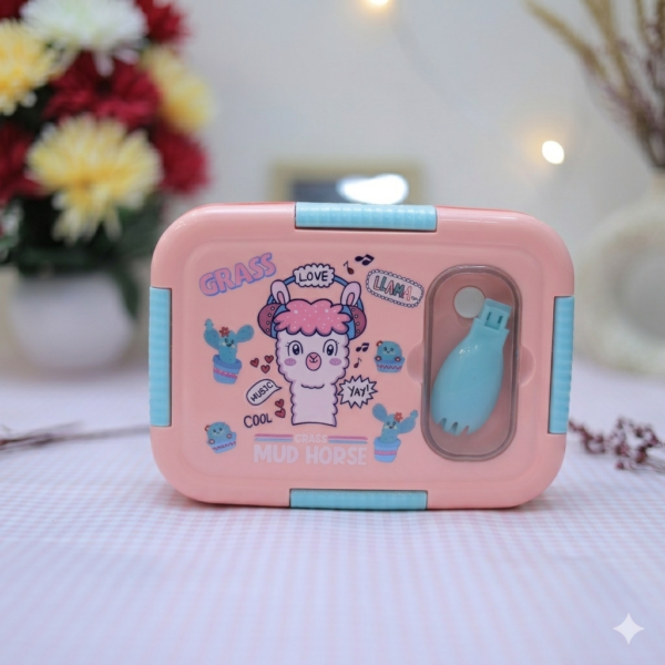 Adorable Llama Cartoon Design: Attractive pastel pink lid with cute llama graphics that kids love. Bright and fun design makes lunchtime exciting for school, picnic, or travel.