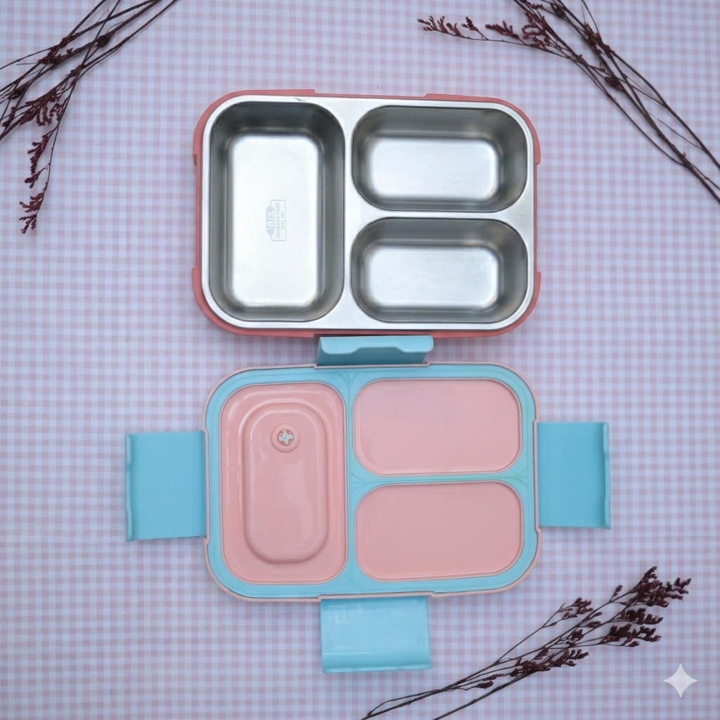 3-Compartment Food Storage: Smart stainless steel tray with three sections to neatly separate rice, roti, sabzi, fruits, snacks, or dessert without mixing flavors.