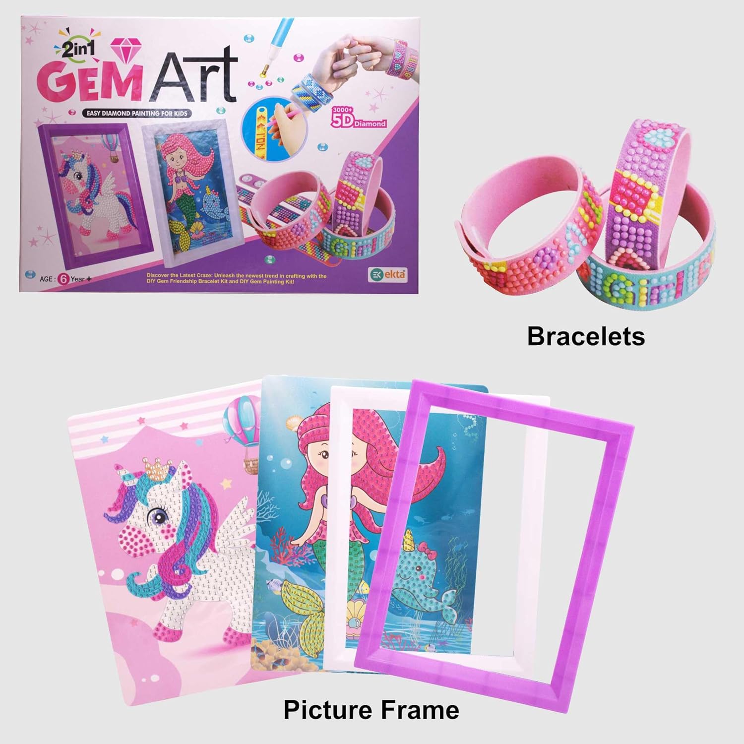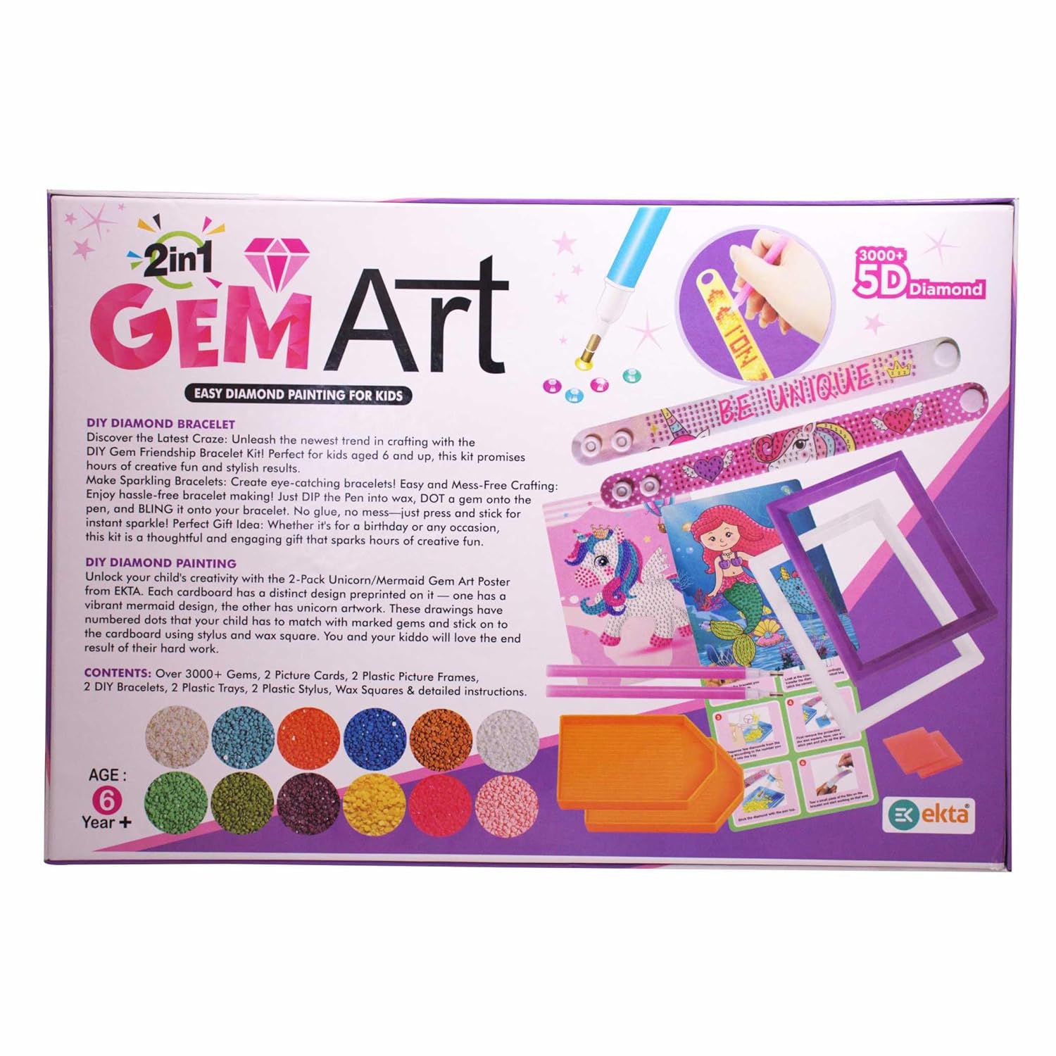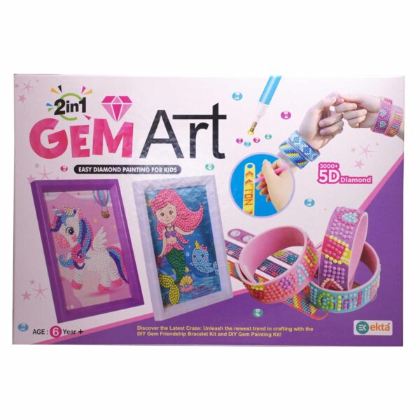 EKTA 2-in-1 Gem Art Craft Kit for Kids, DIY Easy Diamond Painting & Friendship Bracelet Making Set with 3000+ 5D Diamonds, Perfect for Creative Play, Skill Development & Gifts – Suitable for Ages 6+