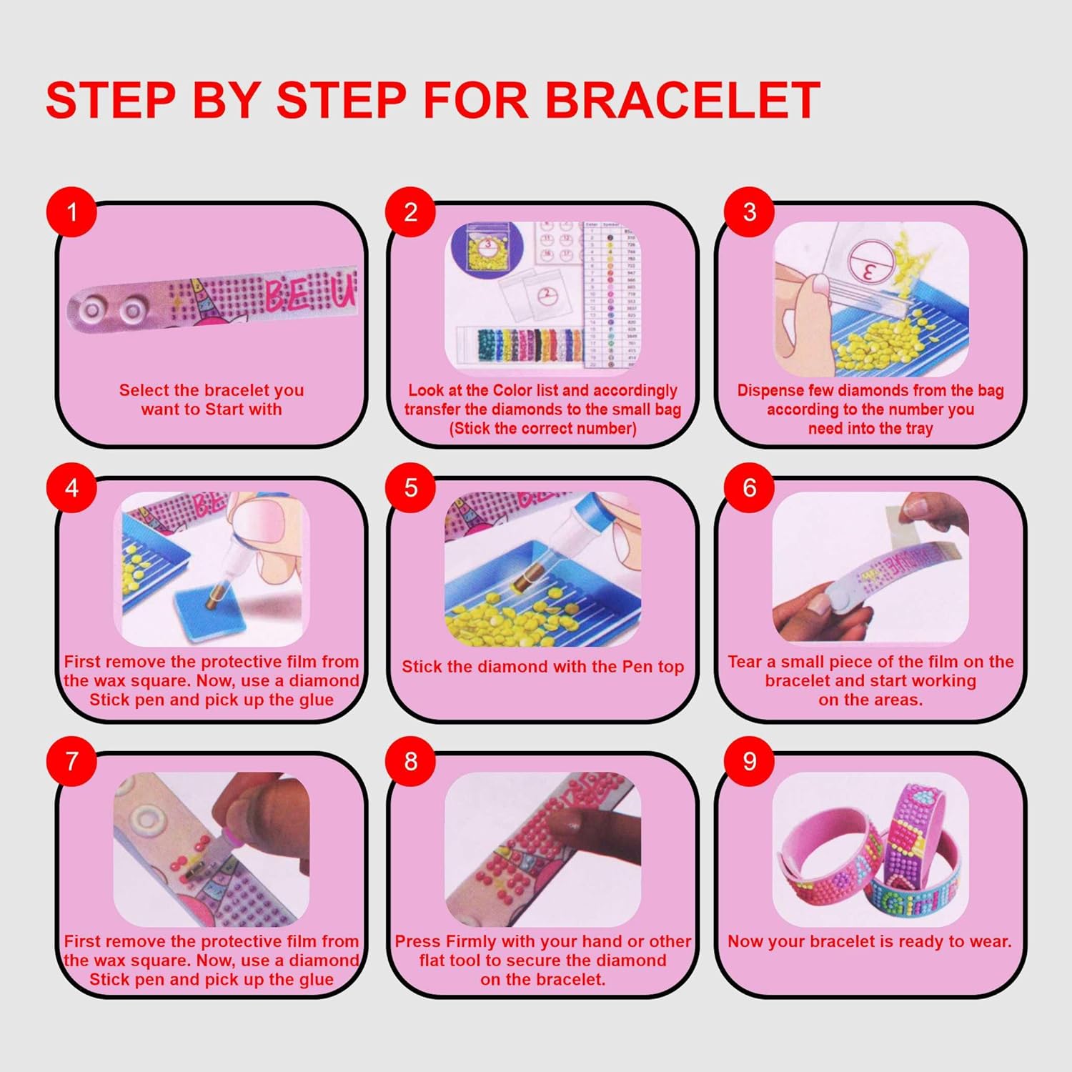 • Friendship Bracelets: The kit also includes everything needed to make personalized friendship bracelets. Children can use the diamonds and the included beads to create beautiful, customizable jewellery. It’s the perfect project for sharing with friends or gifting to family members.