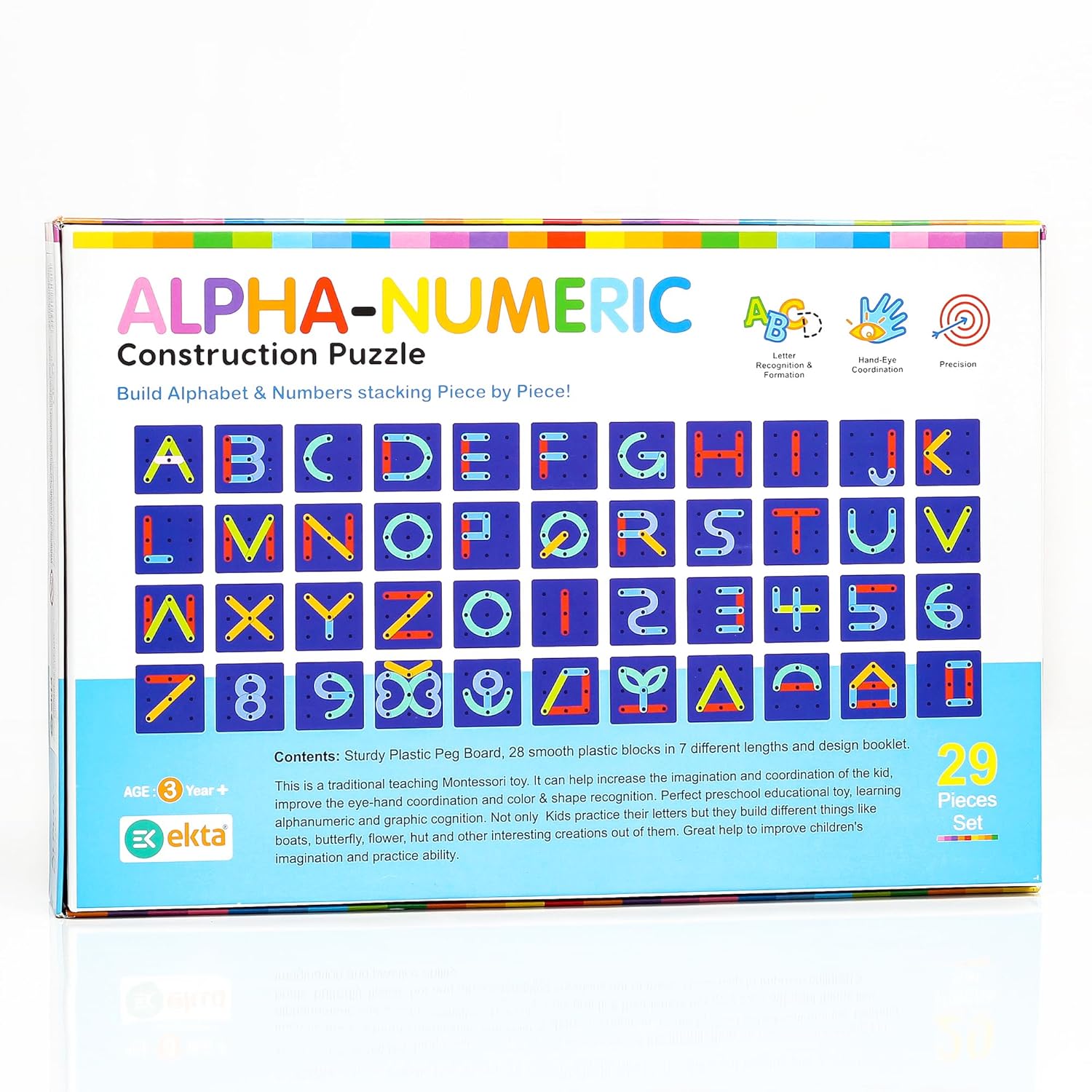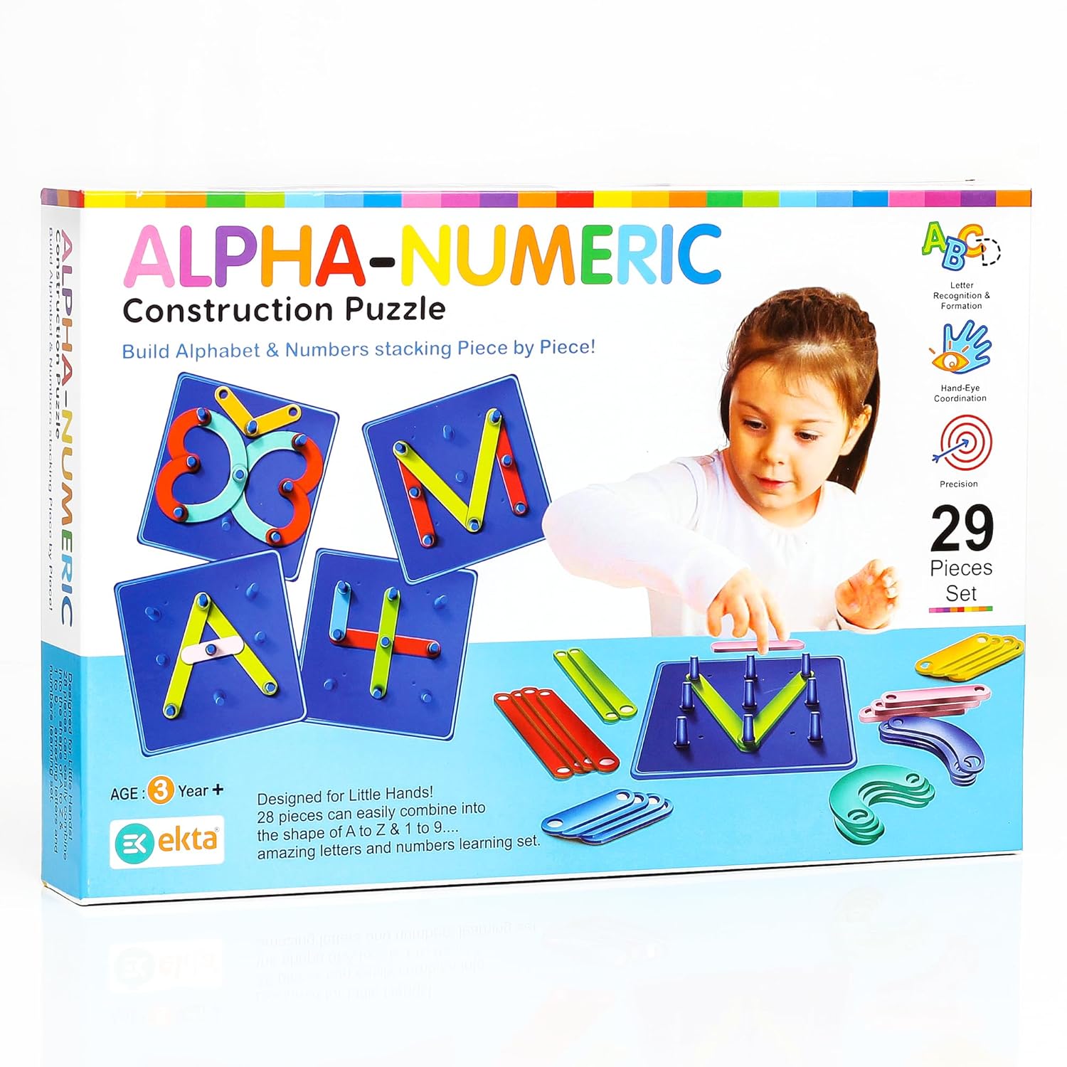 Ekta Alpha-Numeric Construction Puzzle Toy, Built 29 Piece Puzzles Board, Learning Educational Game for Teaching Alphabets, Letters, Numbers & Common Shapes