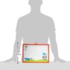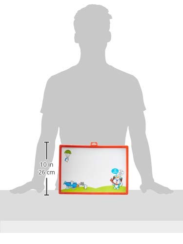 Write and wipe writing board a writing and drawing board in one. This write and wipe board has been designed specially for kids that will help them practice they need to master uppercase, alphabets, words and do some drawings. The double sided writing board has uppercase alphabets encrypted on it to help the kids practice with ease. The other side of the board has blank space where children can write and draw both and do some fun activity. Features play and learn with wipe-off fun. Write again and again and again for age 2+ years two sides for writing 2 in 1 board ideal for basic elementary learning for a developing child. Comes with a temporary marker and a duster to write and wipe one side with alphabets and bland drawing space on other side contents: 1 double sided writing board 1 duster 1 temporary marker please note: Do not use permanent marker on the board as it may harm the surface. Replace the given marker with a temporary marker only. Dimensions: Board outer dimensions: 34.5 cms x 24.5 cms (26 cms with hanger) x 1.1 cms inner board dimensions: 22 cms x 32 cms duster: 7.8 cms x 3.7 cms temporary marker with eraser: 11.2 cms.