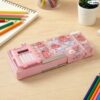 - Features – Magnetic lock features with two side compartments, each one to pop out inbuilt sharpener, eraser compartment, with small led light additional compartment and pencil/pen holder