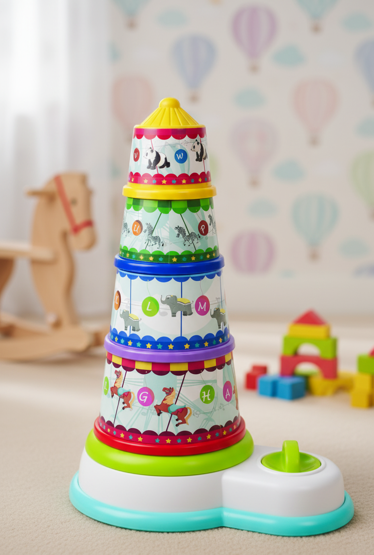 📌 Includes: 4 Stacking Cups + 1 Base with Musical Knob
