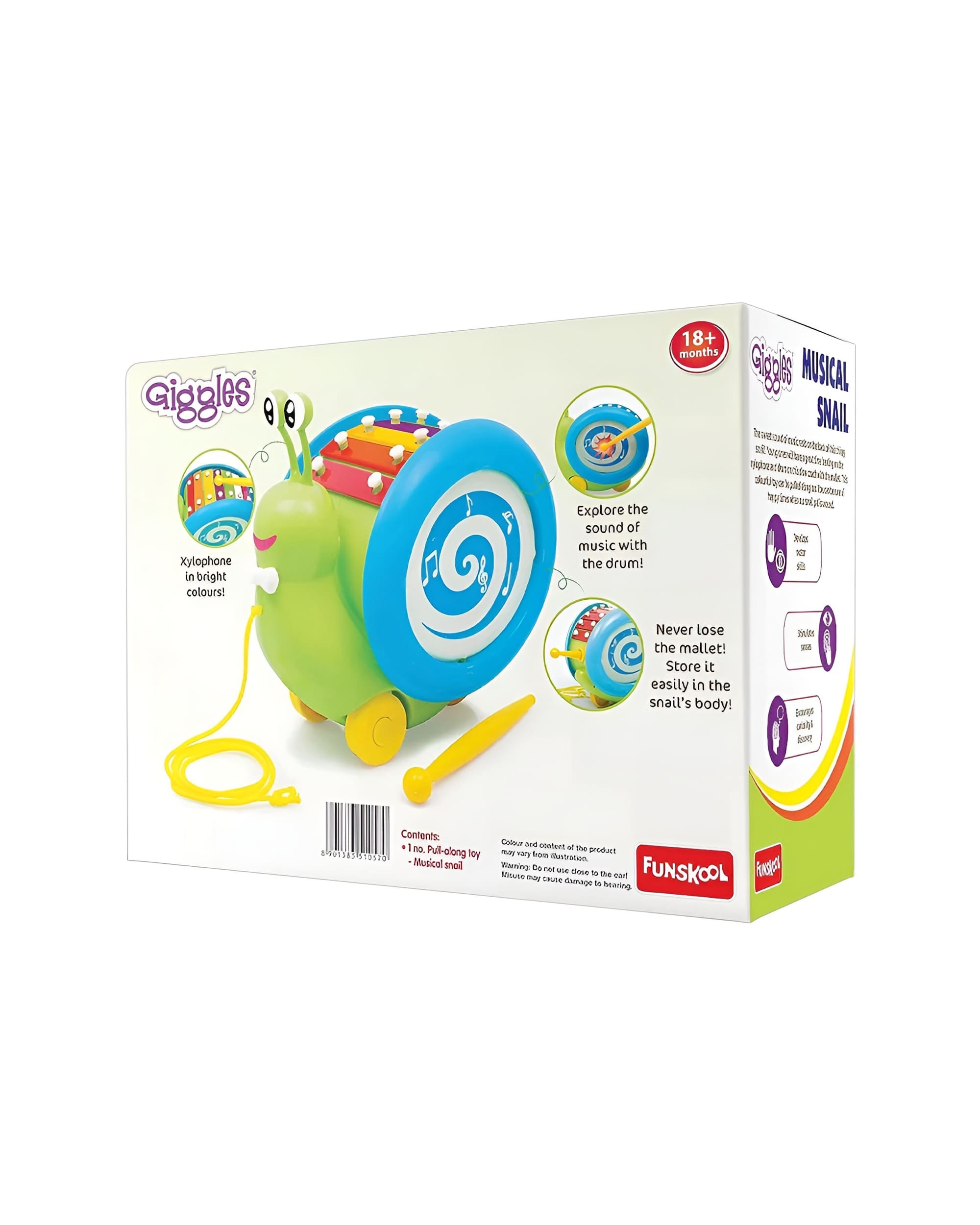 Delightful Funskool Giggles Musical Snail – 2-in-1 Toy for 18+ Months | Pull, Play & Learn!