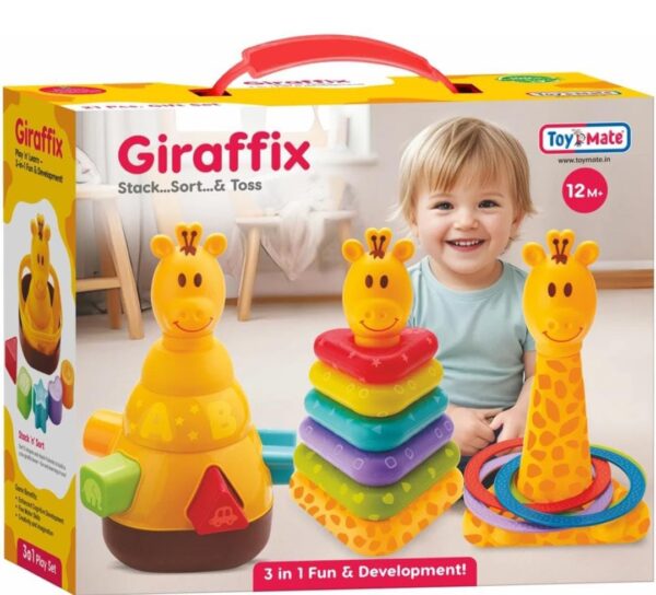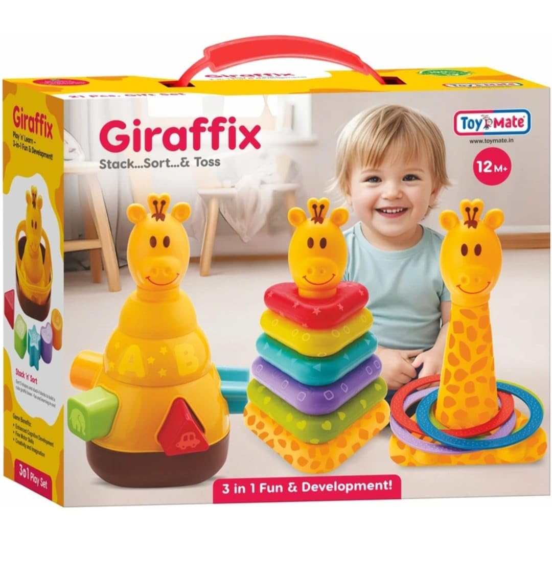 - 3-in-1 Learning Activities: Combines ring stacking, shape sorting, and counting in one colourful giraffe-themed toy to support multiple early learning skills and keep toddlers engaged