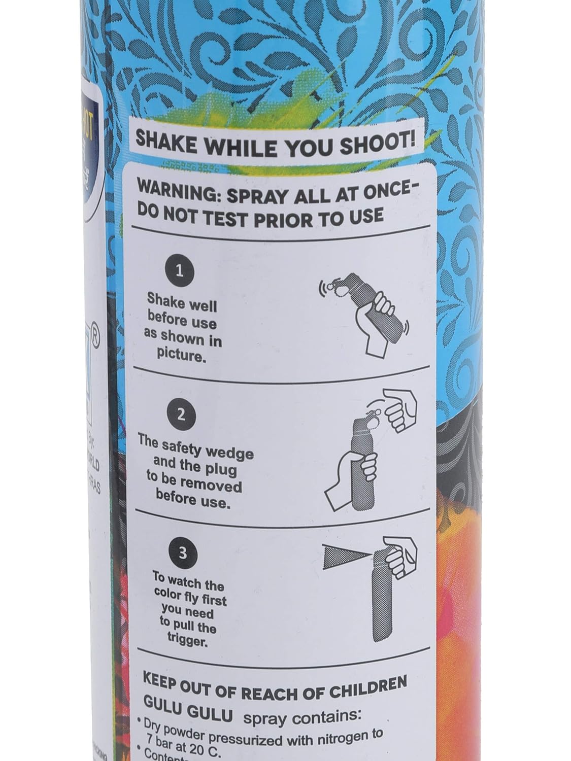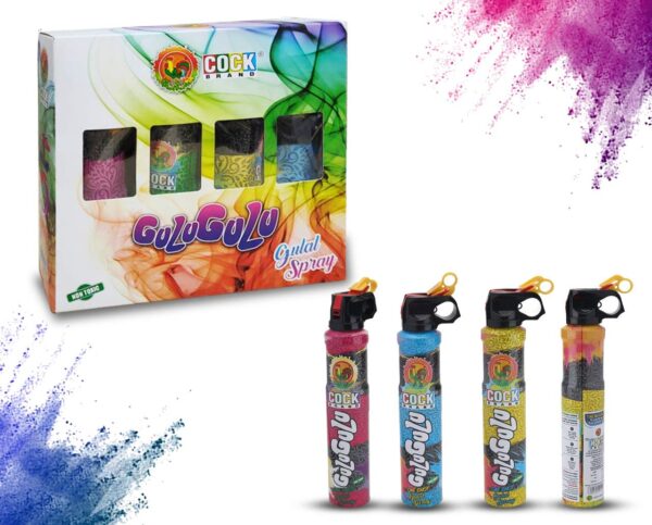 • Pack Contains:– 2 Different colours 2x130g Gulu Gulu non toxic gulal spray