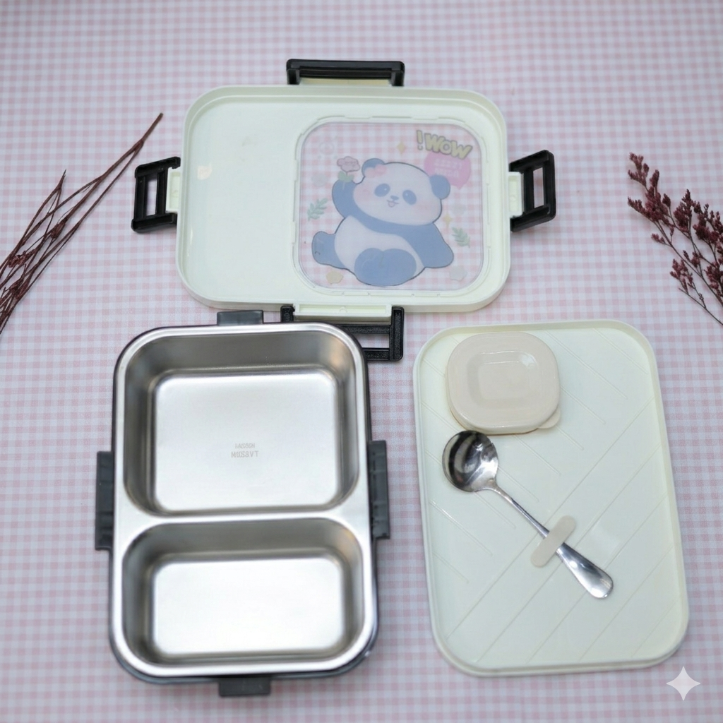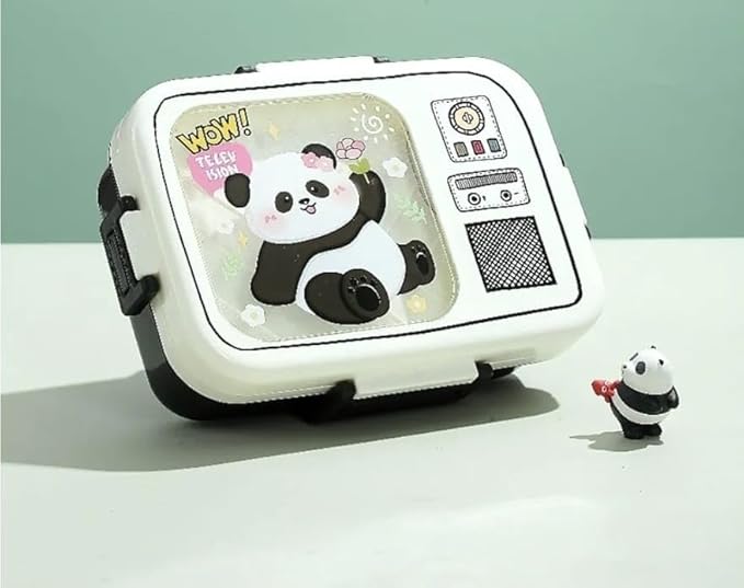 ADORABLE DESIGN: Charming panda-themed exterior design on a white and black colour scheme makes this lunch box appealing for daily use