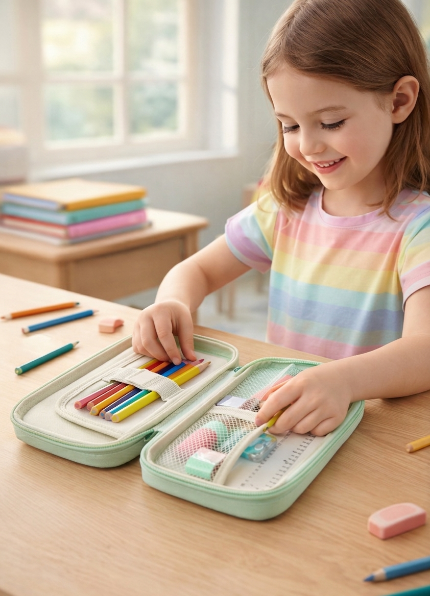 Hardtop Protective Case: Sturdy outer shell helps protect stationery from damage, keeping items safe inside school bags.