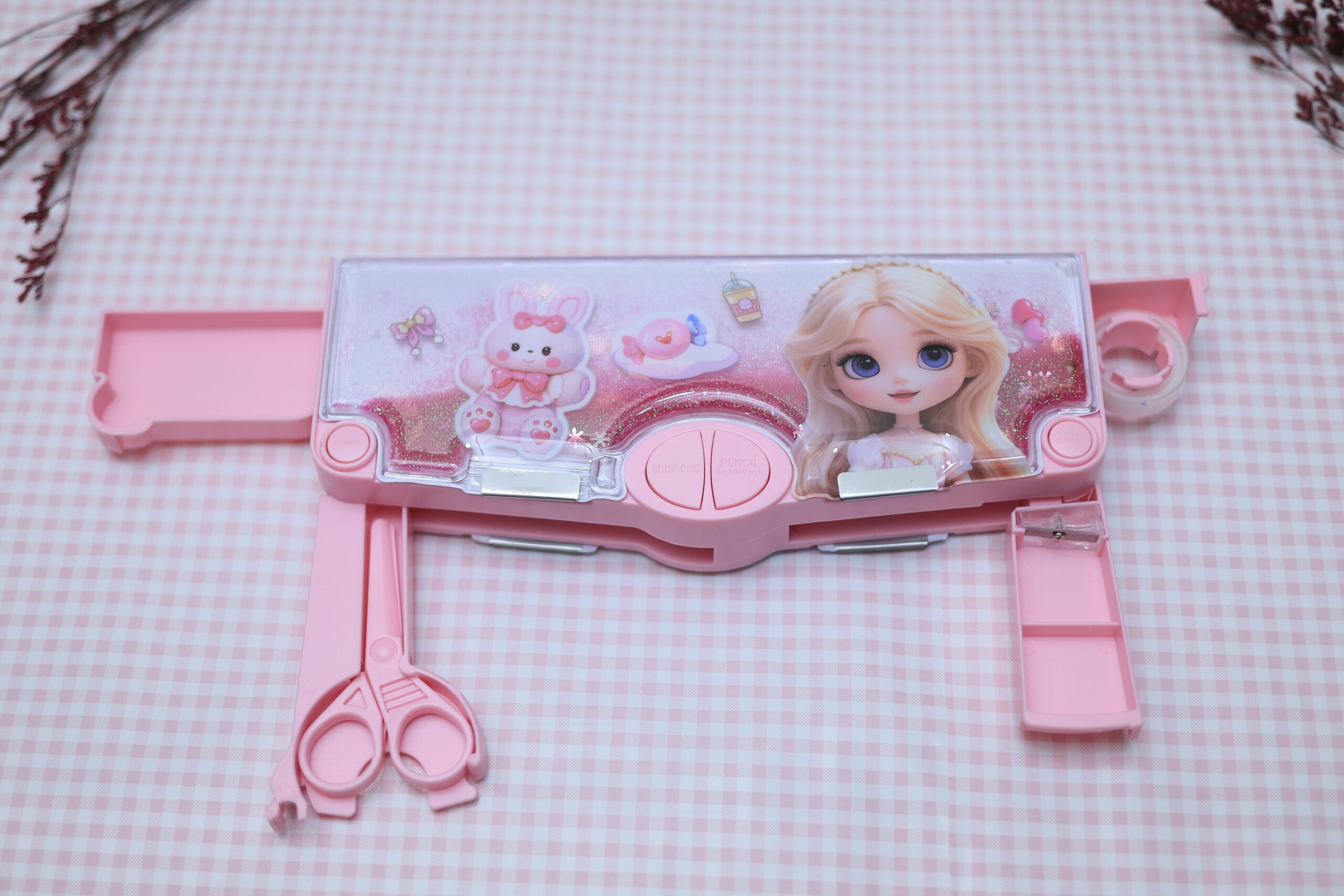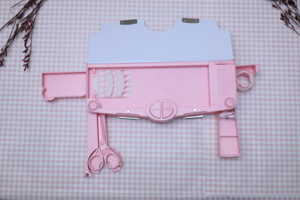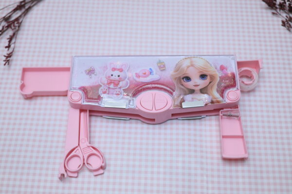 Built-in Accessories: Comes with an inbuilt sharpener,ruler, scissor, tape cutter, small storage compartments, and fold-out sections for better organization and convenience.