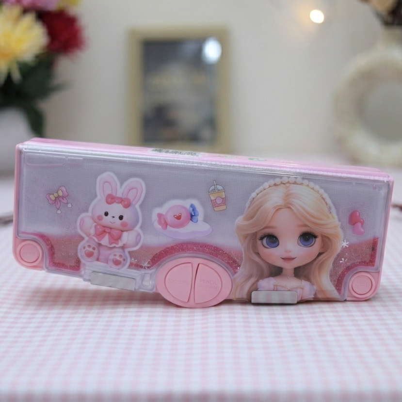 Cute & Attractive Design: Stylish pastel-colored pencil box with fun cartoon print that kids love. Bright and engaging look makes it perfect for school use.