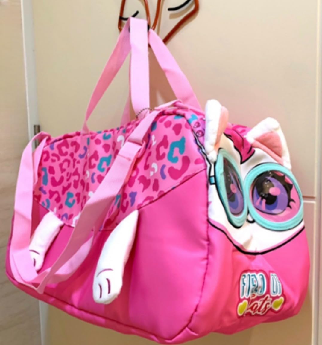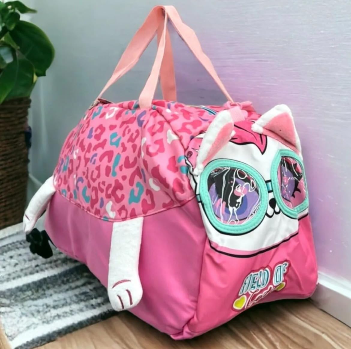 Nylon Duffle Bag for Kids Boys Girls Teenagers | Big Size Gym Sports Travel Weekender Overnight Bag | Cartoon Panda Unicorn Lightweight Durable School 20 cm (Cat Pink)