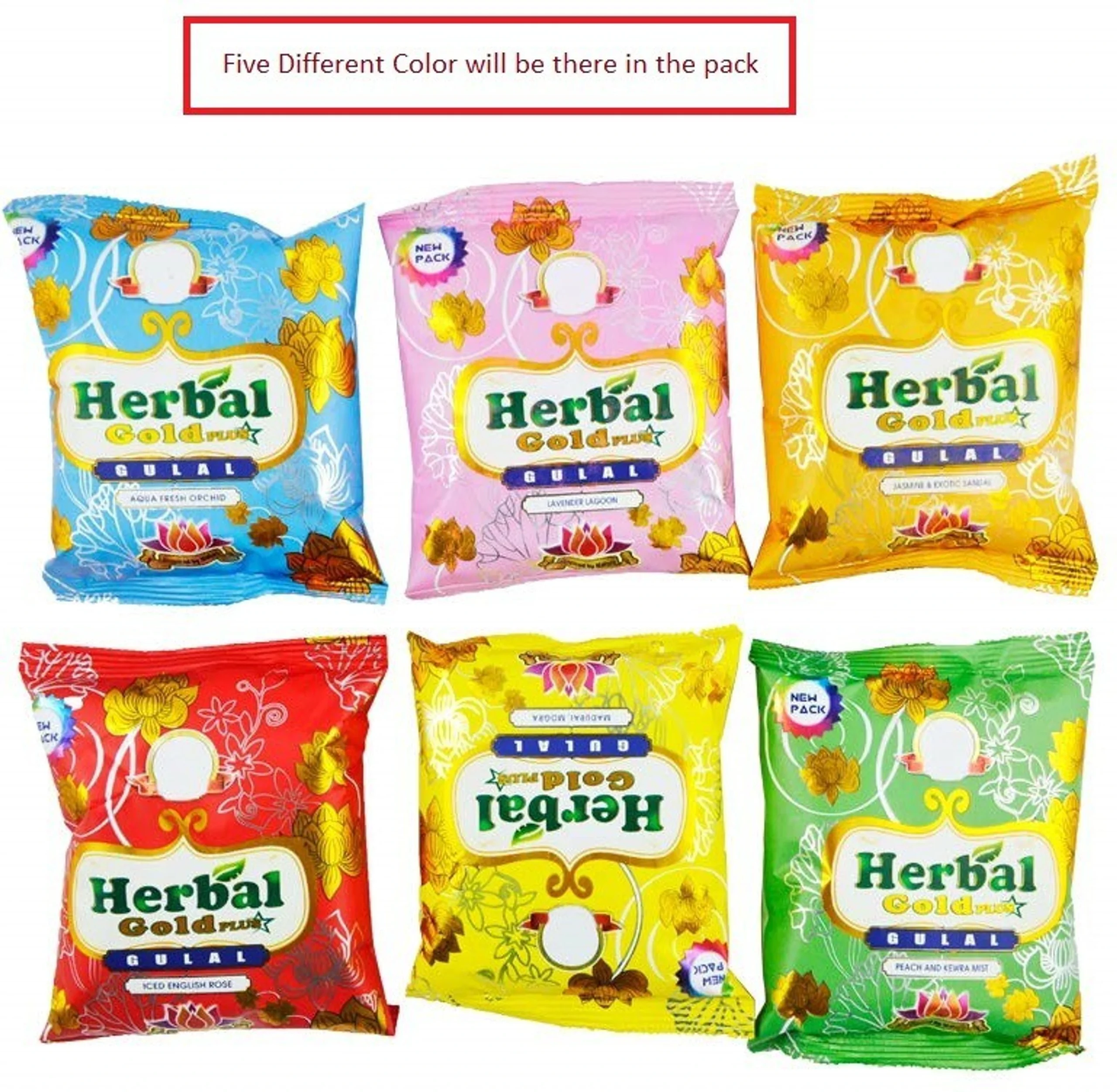 Cock Brand Herbal Gold Gulal 5-in-1 Multi-Pack—a premium, skin-friendly, and eco-safe gulal designed for a vibrant and joyful festival!