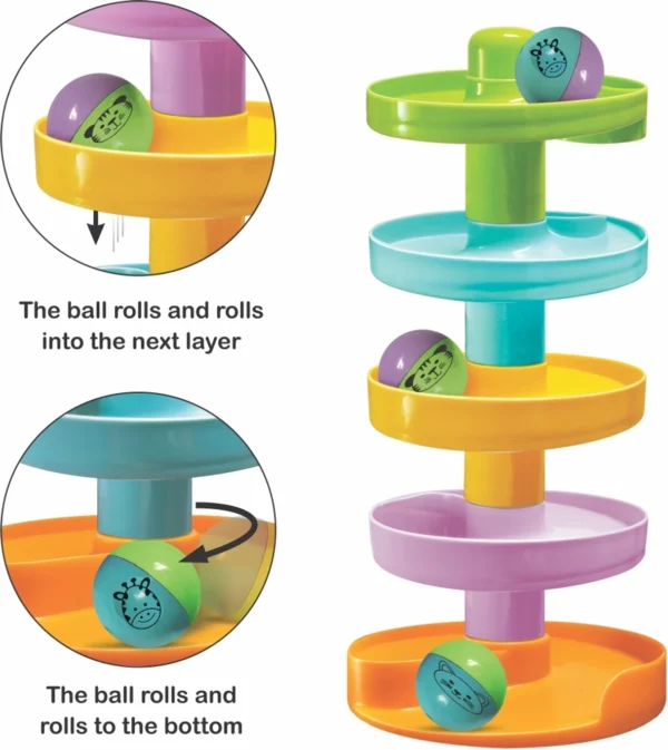 3 sound making balls when spiral down the game, provide immense entertainment for little ones – in terms of sound & positions