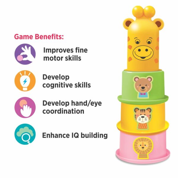 - 4️⃣ COLORFUL & ENGAGING DESIGN Bright colors and cute animal characters stimulate visual development and sensory exploration, encouraging toddlers to stack, sort, and discover