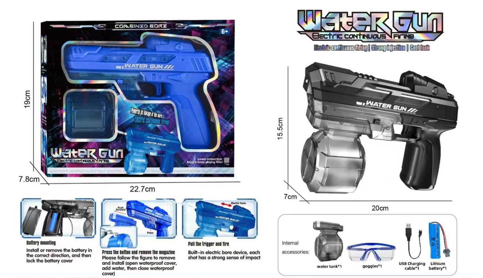 Fully Automatic Operation: Enjoy continuous water blasts without manual pumping, perfect for effortless play.